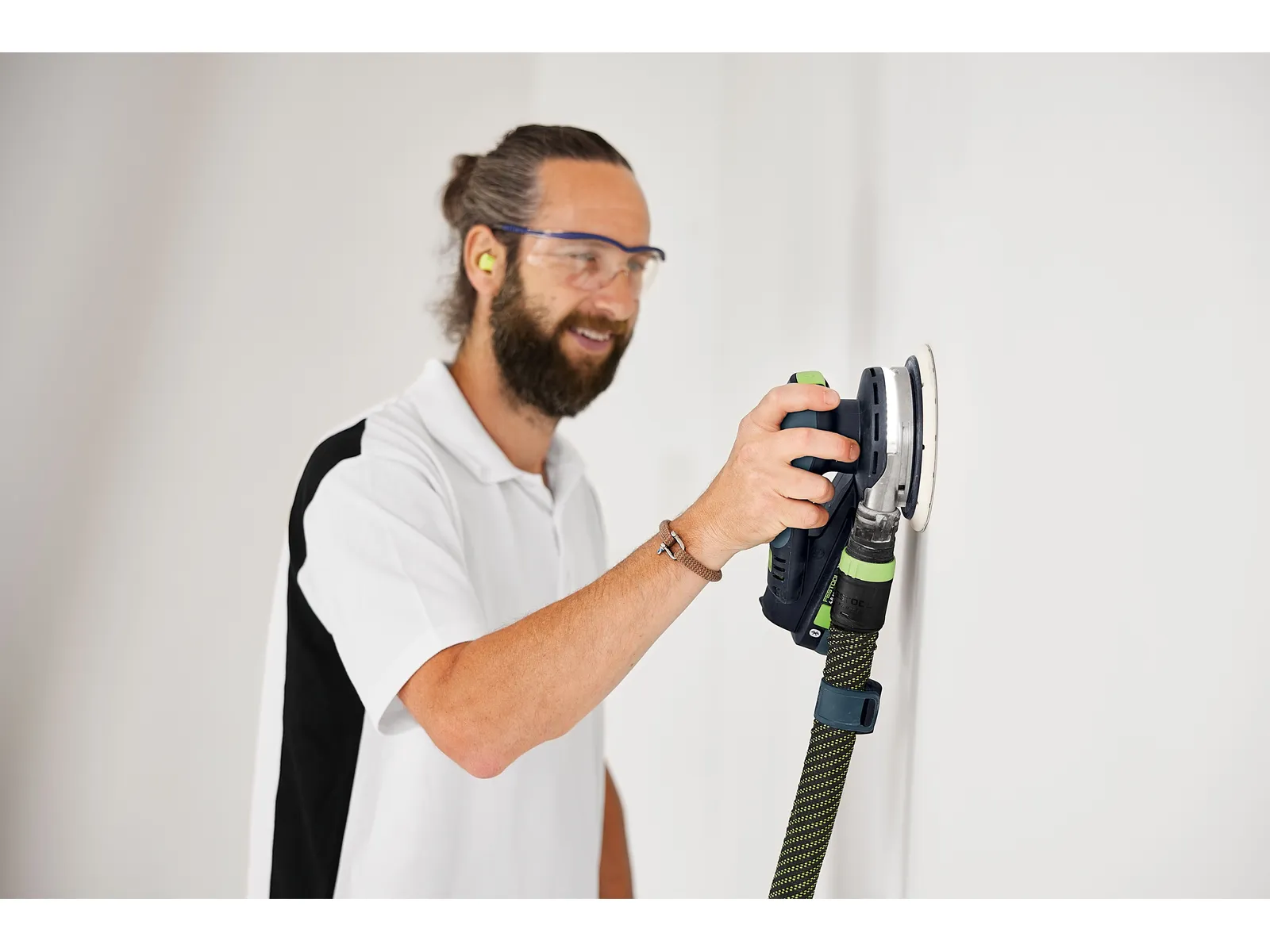 Fie că lucraţi în atelier sau într-un loc greu accesibil, şlefuitorul cu excentric cu acumulatori ETSC 2 vă oferă libertate maximă de mişcare în timpul şlefuirii. Inelul luminos cu LED-uri integrat vă îmbunătăţeşte vizibilitatea asupra suprafeţei şi acoperă denivelările în timpul şlefuirii. Mişcarea de şlefuire excentrică asigură obţinerea de suprafeţe de înaltă calitate, fără necesitatea de prelucrări ulterioare costisitoare. Acumulatorul puternic de 4,0 Ah asigură un progres rapid al lucrului şi este compatibil cu maşinile şi încărcătoarele dumneavoastră cu acumulatori de 18 V. Datorită înălţimii mai scăzute de construcţie şlefuitorul stă direct în mână – pentru o şlefuire confortabilă, indiferent dacă lucraţi pe o suprafaţă plană sau deasupra capului.