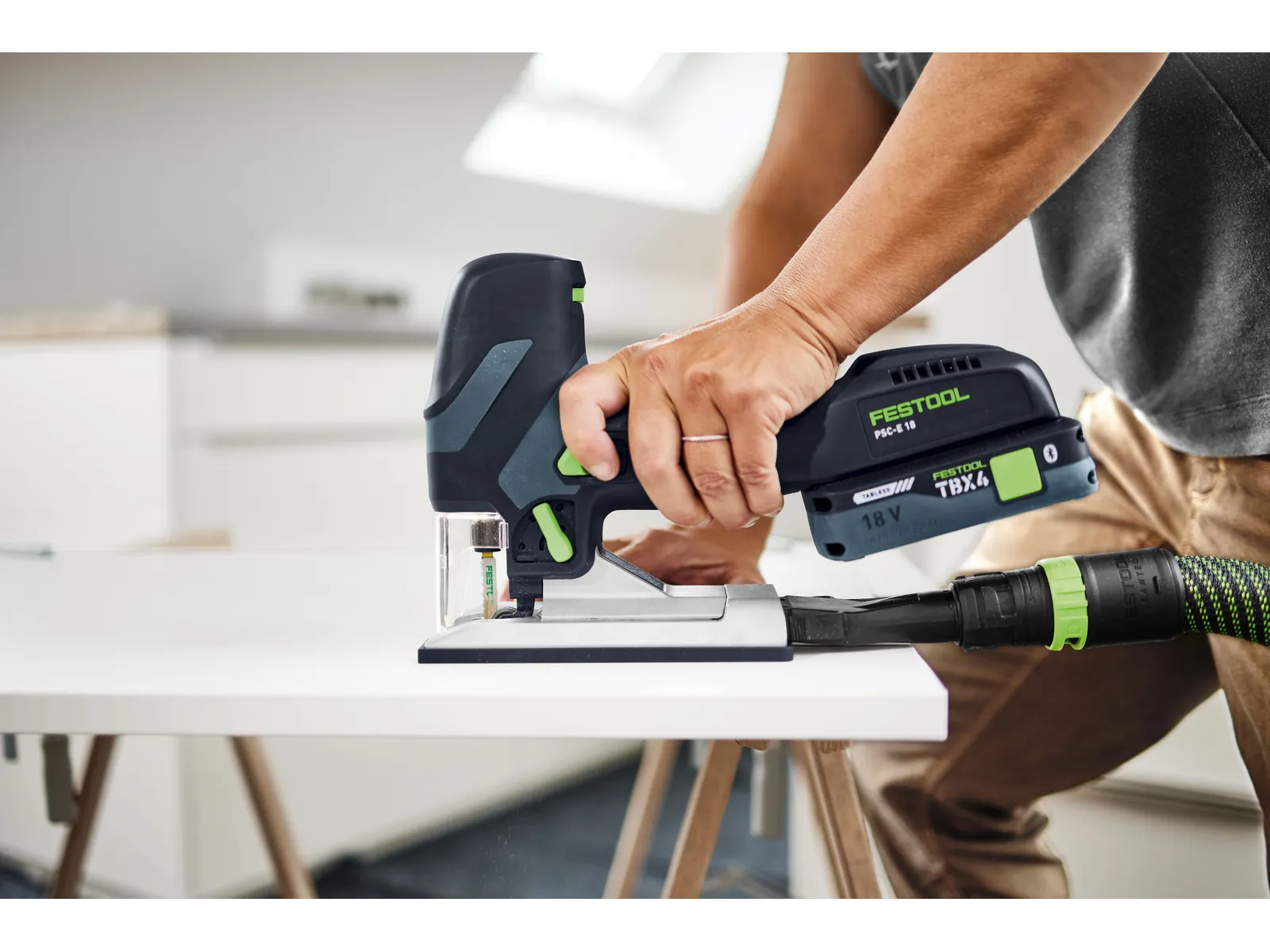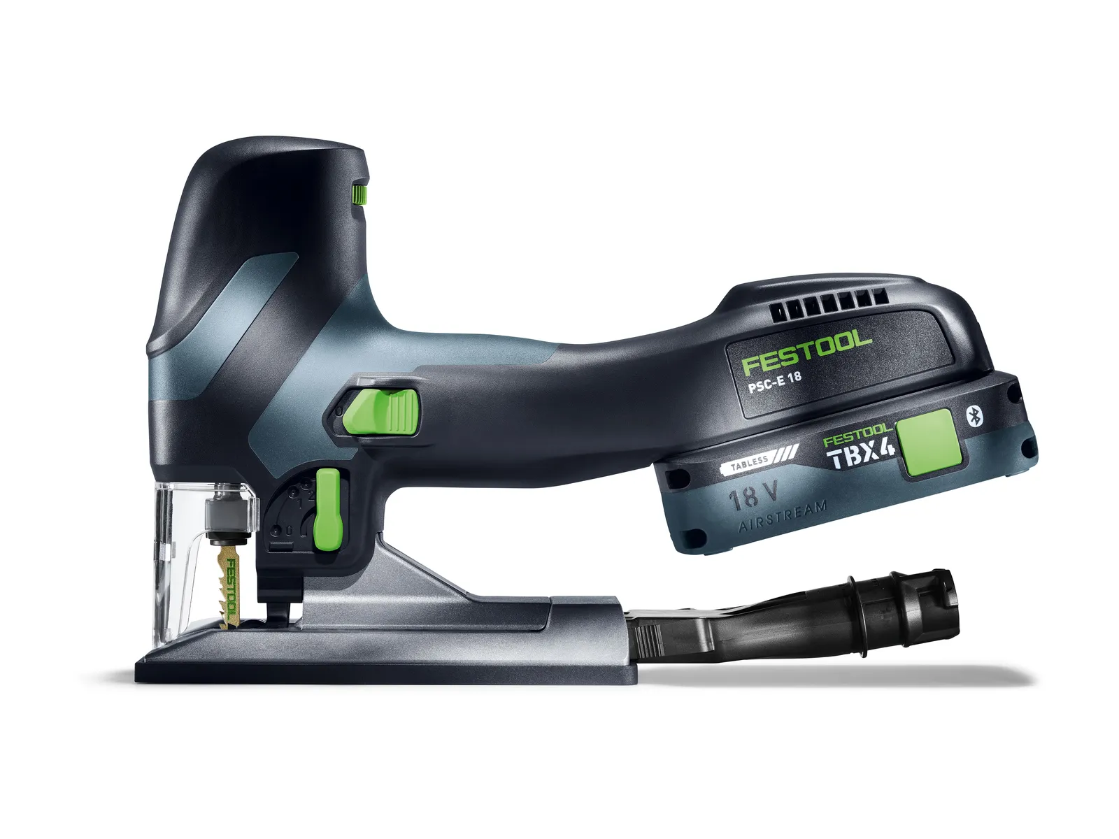 Având o greutate de doar 2,3 kg, inclusiv acumulatorul, şi o formă constructivă subţire şi ergonomică, ferăstrău vertical cu acumulator de mici dimensiuni a fost redus la ceea ce este esenţial: Tăieri în ungi drepte şi drepte la grosimi ale materialului de până la 40 mm. Operarea este simplă. O masă unghiulară fixă şi o rolă de ghidare potrivită pentru fiecare lăţime a pânzei de ferăstrău asigură o disponibilitate rapidă de funcţionare, fără timpi de echipare costisitori. Astfel, nu trebuie să renunţaţi în niciun caz la confortul în timpul lucrului şi la lucrul adaptat la structura materialului. Datorită schimbării fără scule a pânzei de ferăstrău şi a sistemului de reglare a turaţiei cu pornire automată, puteţi crea în orice moment condiţii adecvate aplicaţiei. De asemenea, deosebit de manevrabil şi este un adevărat pachet de putere este acumulatorul adecvat: Acumulatorul puternic TBX 4 asigură un avans de lucru rapid şi este compatibil cu toate maşinile şi încărcătoarele dumneavoastră cu acumulatori de 18 V.
